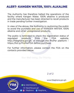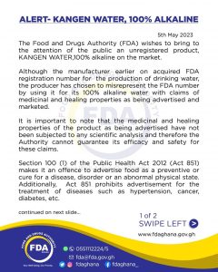 The Food and Drugs Authority(FDA) has cautioned the public against purchasing and use of an unregistered water brand on the Ghanaian market.