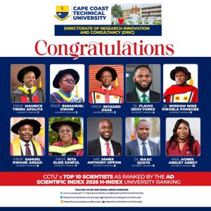 Cape Coast Technical University(CCTU) has proudly recognised ten of its distinguished academics and researchers after they were named among the institution’s leading scientists in the 2026 AD Scientific Index H-Index University Ranking.