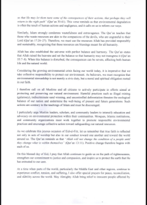 He called on Muslim leaders, scholars, and community groups to increase efforts in educating and advocating for environmental protection, urging mosques and Islamic institutions to encourage responsible practices.
