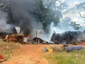 The Director then ordered one of the arrested persons to call the site owner. The first individual to arrive identified himself as a Defence Intelligence (DI) representative from the Ahafo Region. Shortly after, an individual named Alex arrived in a Toyota RAV4, arrogantly claiming ownership of the site. Another man arrived later in a Range Rover and was also arrested. While at it, the Naimos field task force set ablaze shelters used as offices and shelters by the illegal miners.