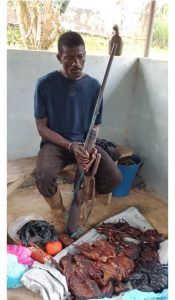 Upon his arrest, officers retrieved a shotgun, five live cartridges, and a cutlass. A further search confirmed that he had hunted two Maxwell’s duikers and four giant rats within the protected forest.