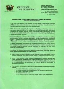 President John Dramani Mahama has banned board members of State-Owned Enterprises (SOEs) and other public institutions from travelling abroad for training, conferences, retreats and study programmes as part of efforts to reduce government expenditure.