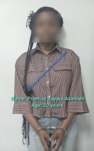 Investigations by the Cyber Vetting and Enforcement Team led to the arrest of Stephanie Asamani, Promise’s sister, on March 13, 2026, at her residence in Cambodia, Spintex, Accra. During questioning, Stephanie explained that on March 9, 2026, she had booked a ride from Spintex to Oyibi with Anthonio as the driver. During the trip, the driver asked her to change her drop-off location to a nearby spot so he could go “off-trip.” She also mentioned overhearing a conversation in Ewe, where the driver said, “I am bringing the goods to the location, so wait.”